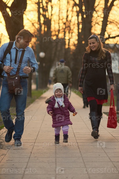 Семья гуляет на улице