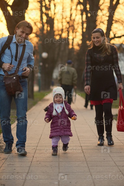 Семья гуляет на улице