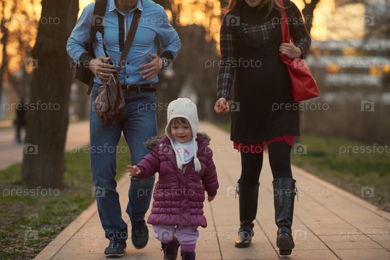 Семья гуляет на улице