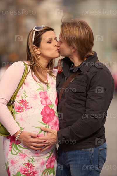 Мужчина и беременная женщина на улице