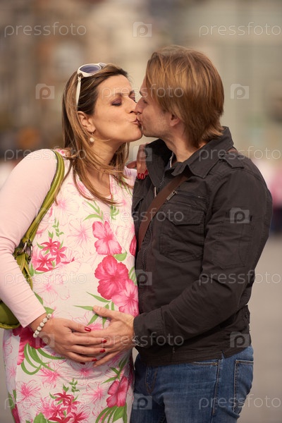 Мужчина и беременная женщина на улице
