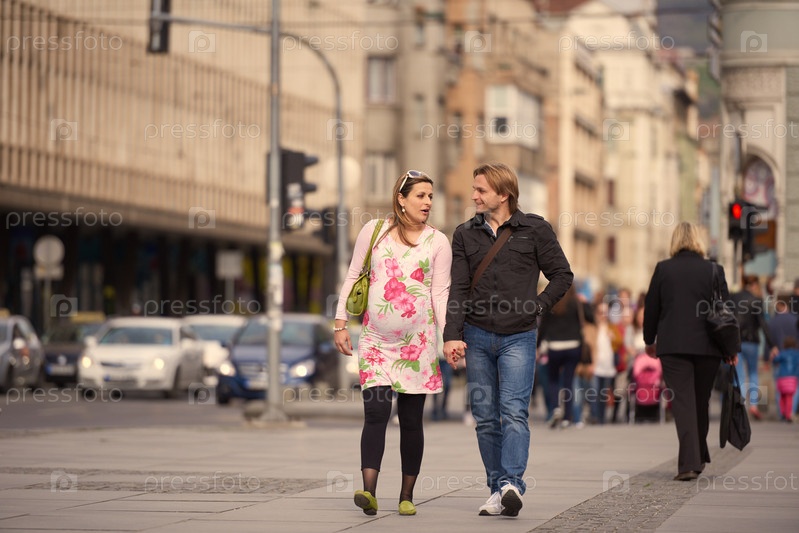 Мужчина и беременная женщина на улице