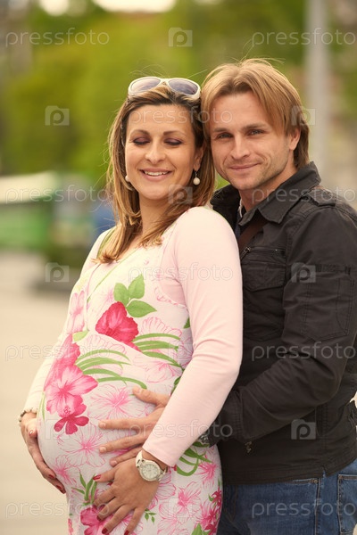 Мужчина и беременная женщина на улице