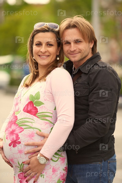 Мужчина и беременная женщина на улице