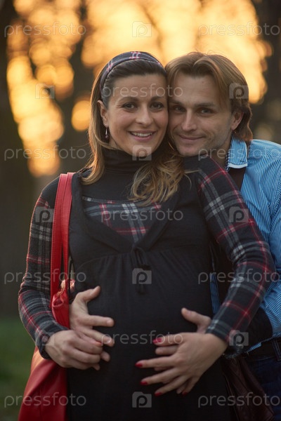 Мужчина и беременная женщина на улице