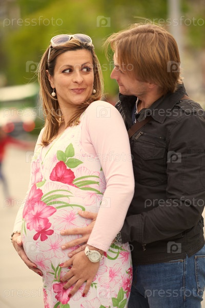 Мужчина и беременная женщина на улице