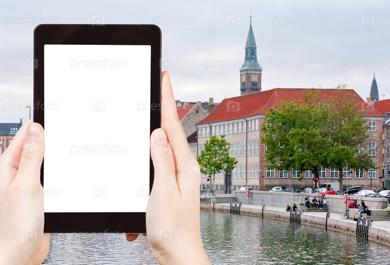 Человек фотографирует канал в европейском городе
