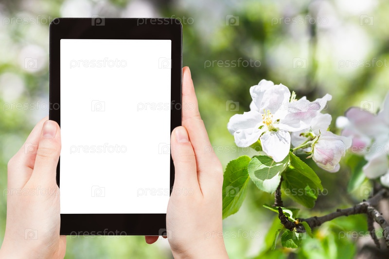 Человек фотографирует ветку дерева