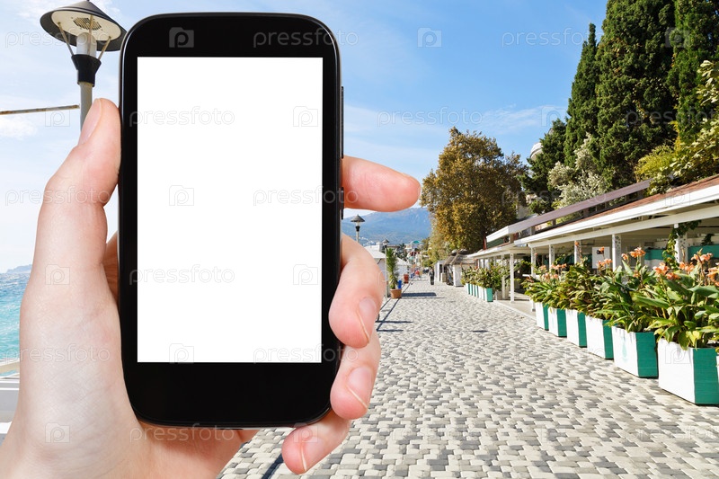 Человек фотографирует улицу Массандра, Ялта