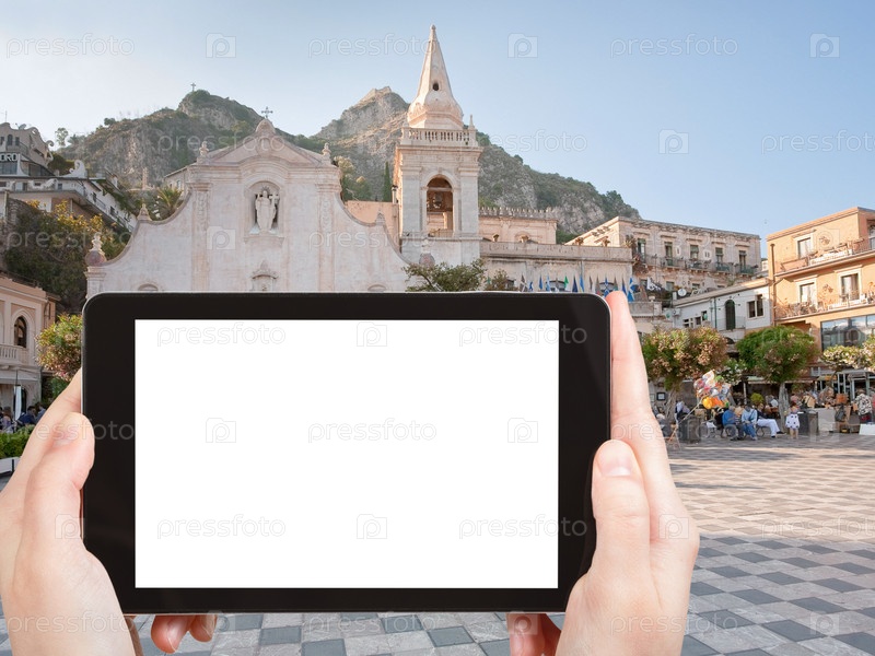 Человек фотографирует дворец IX апреля в Таормине