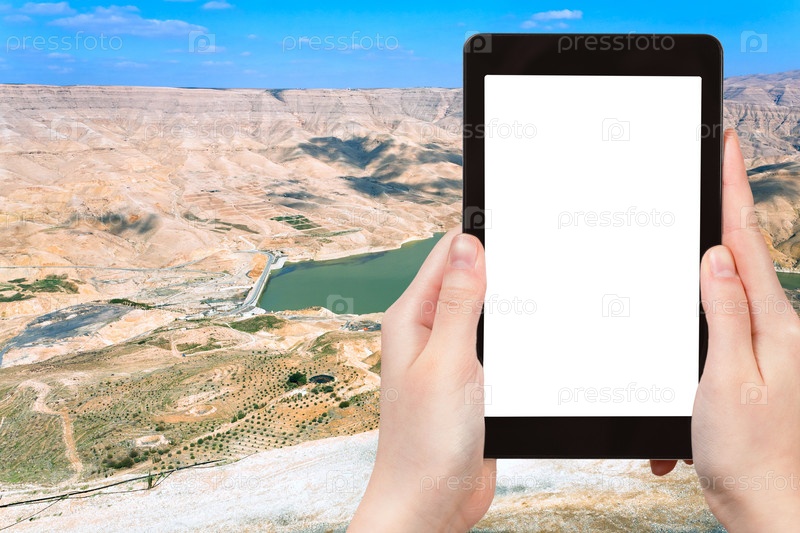 Человек фотографирует долину Вади аль Муджиб, Иордания