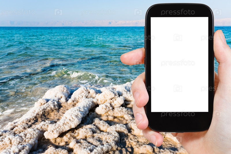 Человек фотографирует побережье Мертвого моря, Иордания