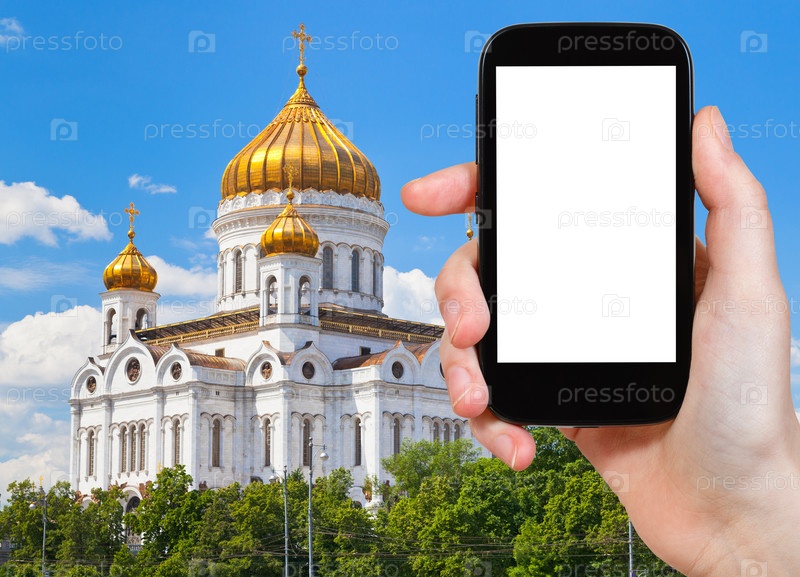 Человек фотографирует собор в Москве