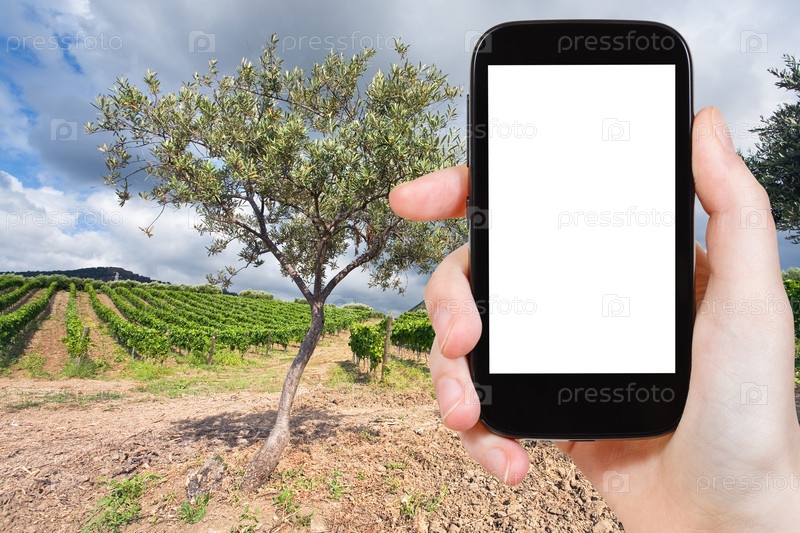 Человек фотографирует виноградник в регионе Этна, Сицилия