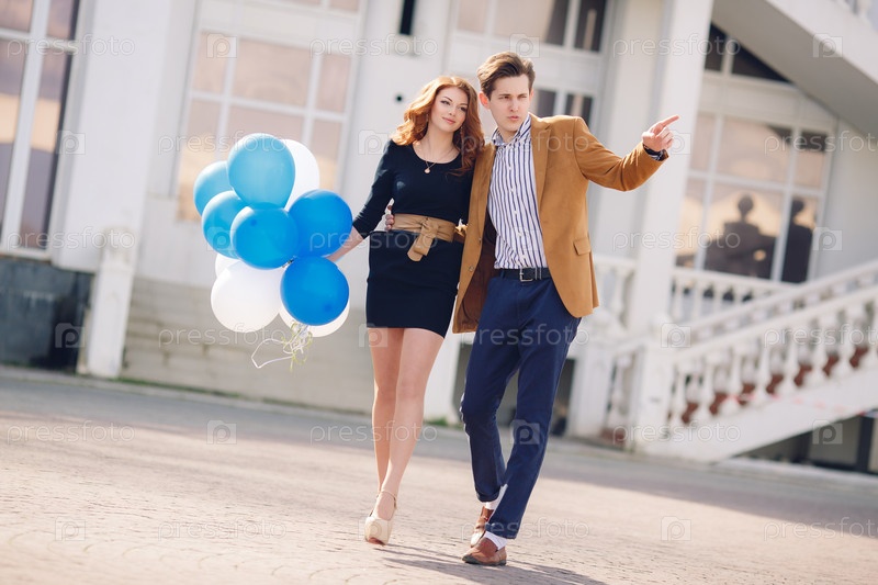 Молодая влюбленная пара в городе