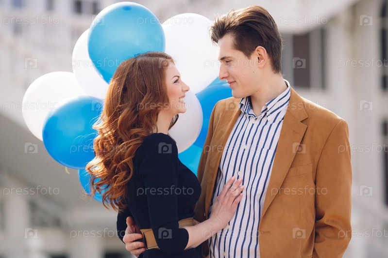 Молодая влюбленная пара в городе