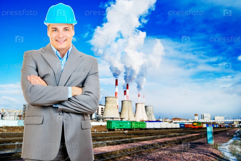 Инженер на индустриальном фоне