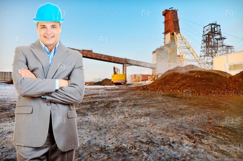 Инженер на индустриальном фоне