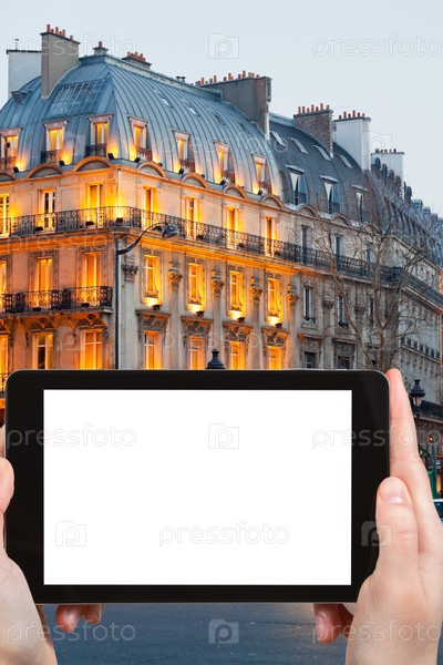 Турист фотографирует бульвар Сен-Мишель в Париже