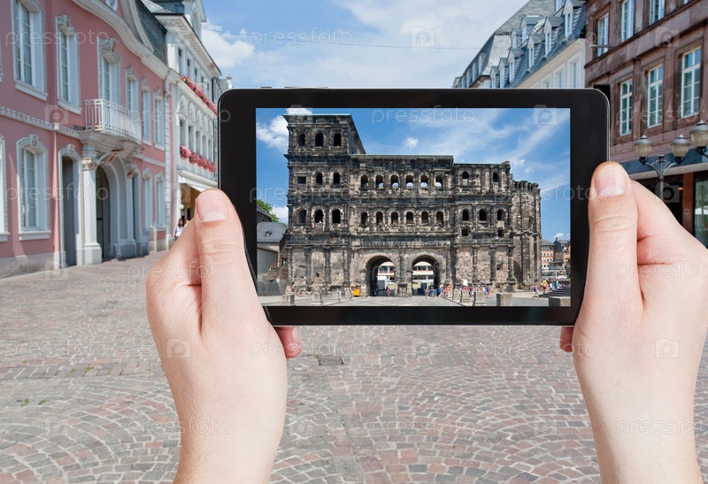 Турист фотографирует Порта Нигра в Трире