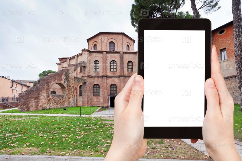 Турист фотографирует базилику Сан-Витале в городе Равенна