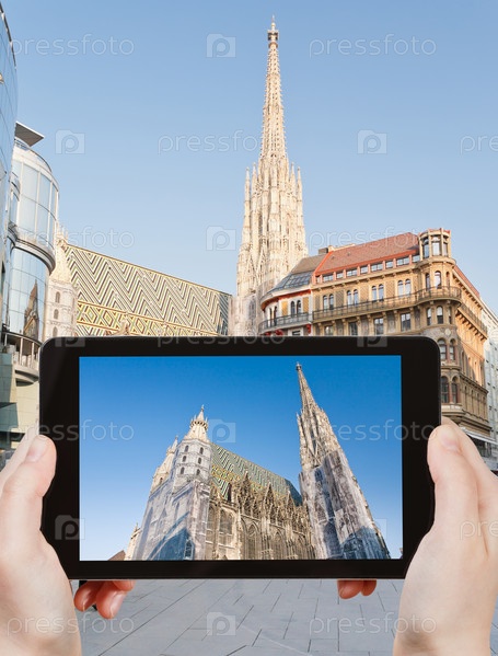 Турист фотографирует собор Святого Стефана, Вена