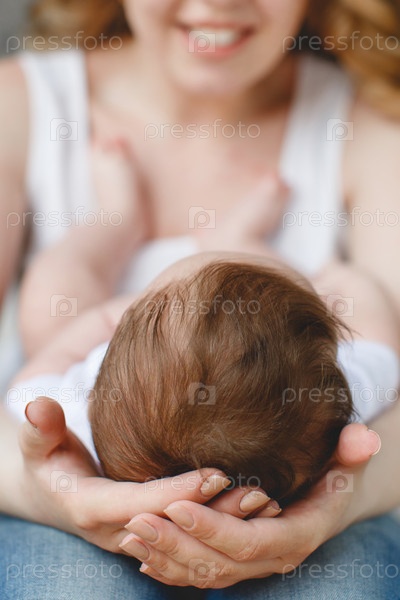 Младенец ухватился за мамин палец