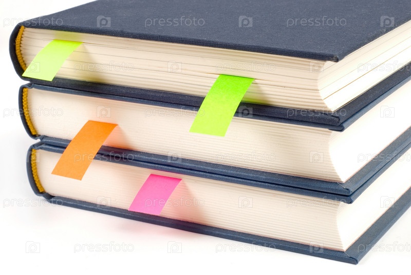 Три книжки с закладками на белом фоне