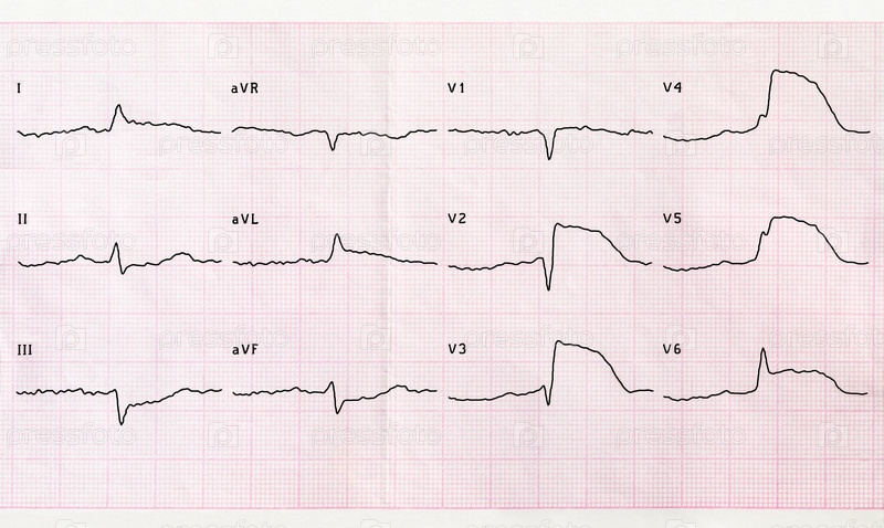 Острая начальная стадия крупноочагового инфаркта миокарда на ЭКГ