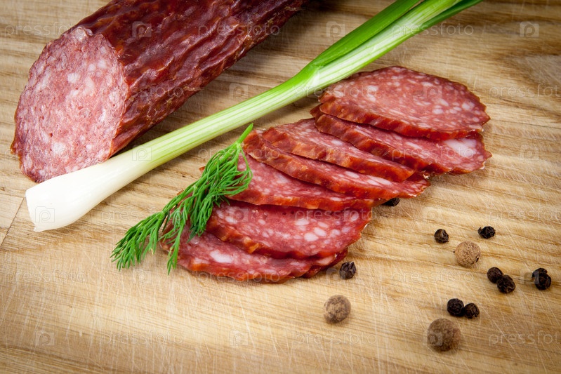 Колбаса салями на доске