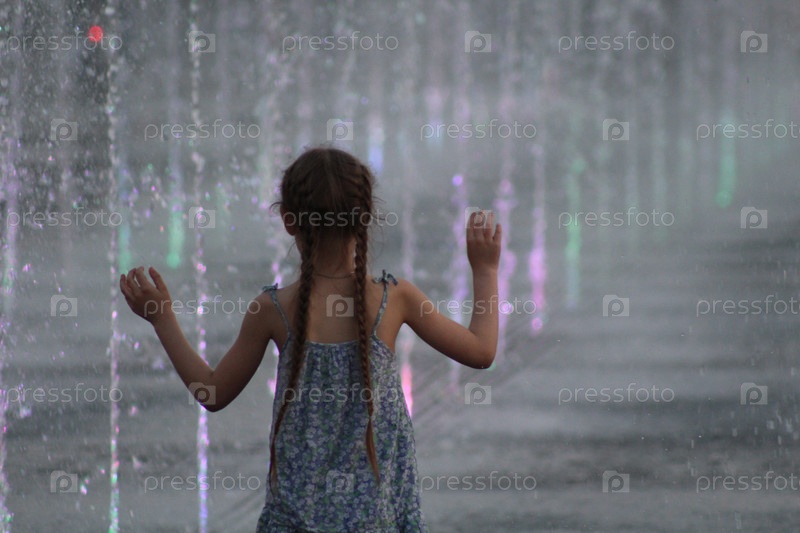 Девочка играется в фонтане