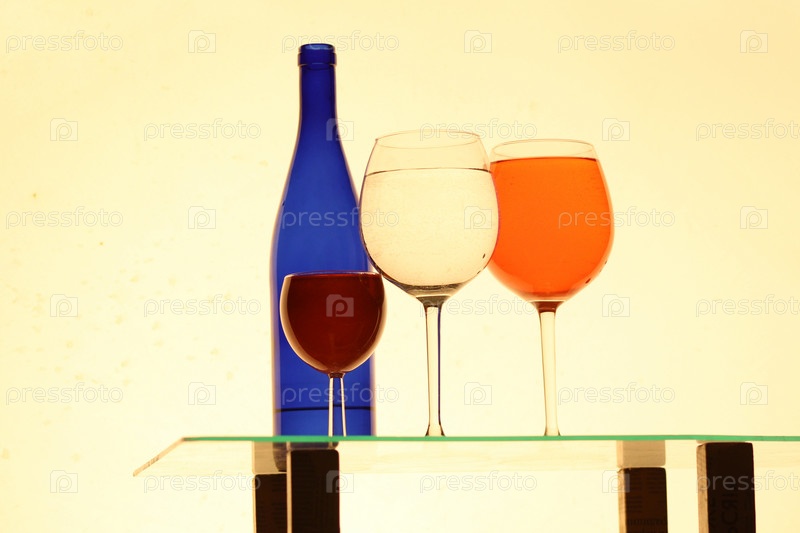 Натюрморт из бутылки и бокалов