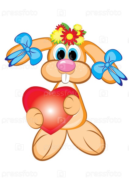 Зайчиха с сердечком на белом фоне