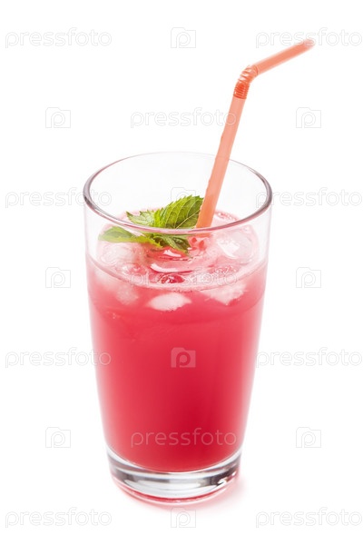 Стакан свежего сока из арбуза, изолированные на белом фоне