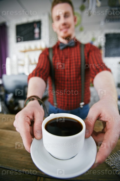 Человек предлагает чашку кофе