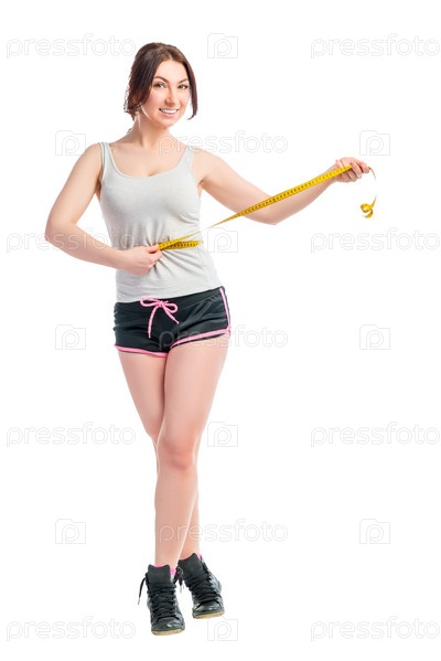 Девушка измеряет талию