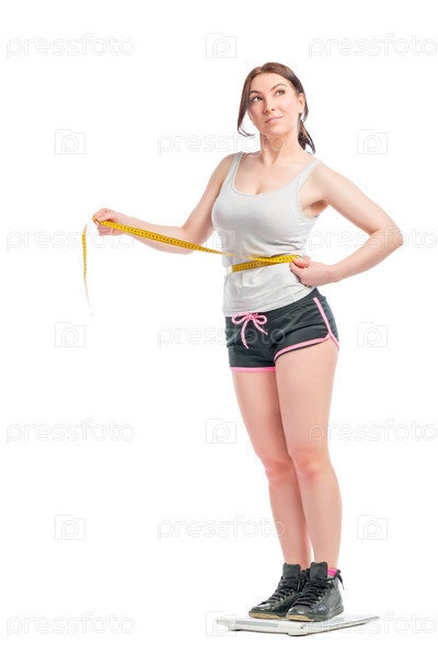 Девушка измеряет талию