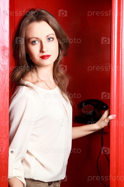 Девушка в красной телефонной будке