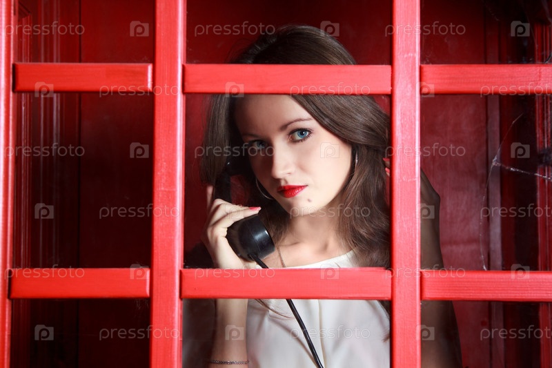 Девушка в красной телефонной будке