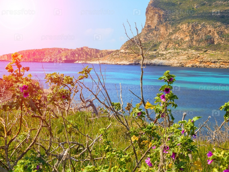 Весенние цветы на утесе у Средиземного моря