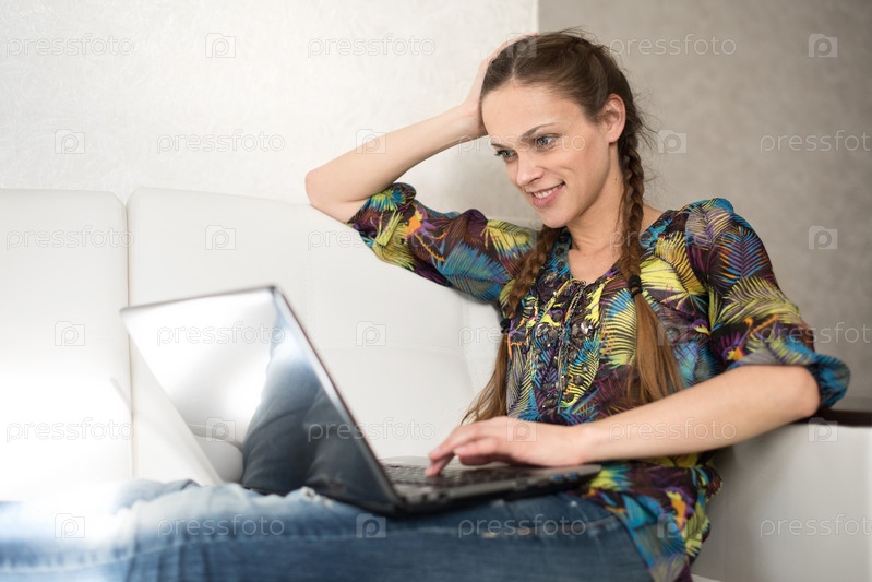 Красивая женщина, просмотр на ноутбуке