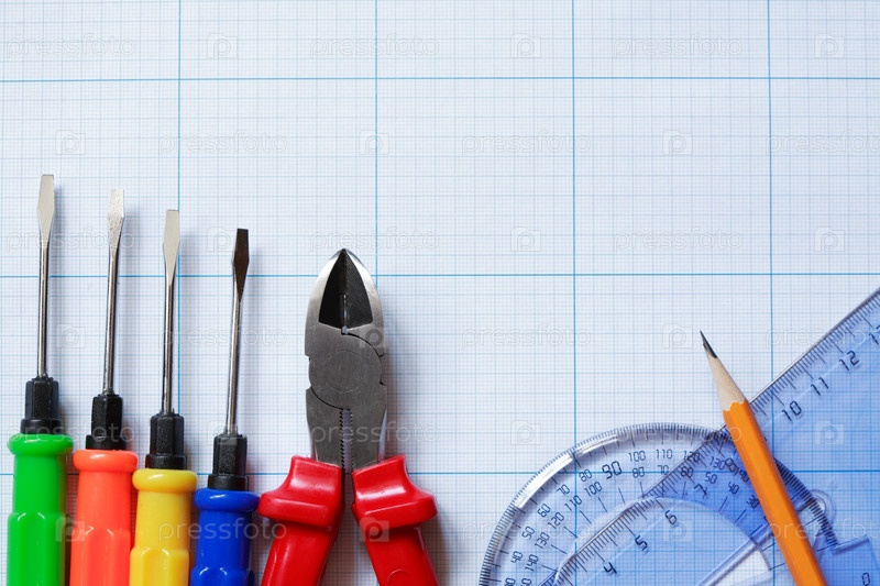 Ремонтные и кацелярские инструменты на миллиметровой бумаге