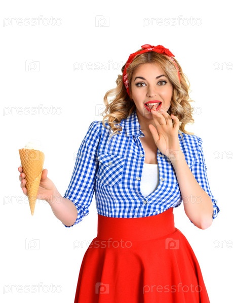 Белокурая девушка с мороженным