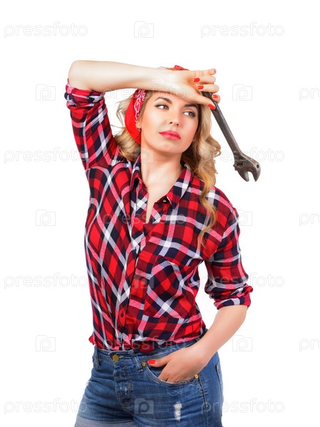 Девушка с ретро гаечный ключ