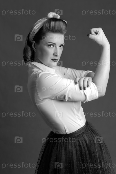 Женщина показывает бицепс