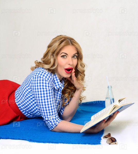 Удивлен девушка с книгой в руке ретро