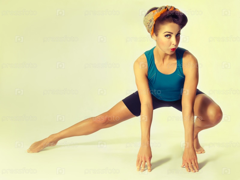 Женщина в спортивной одежде, делая гимнастику