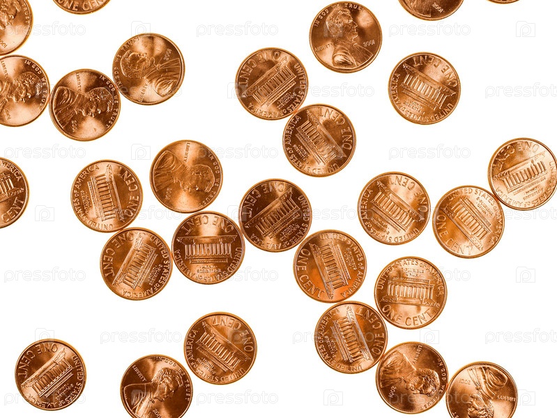 Винтаж Глядя доллар монеты 1 цент пшеницы Пенни % валюта Соединенных Штатов, изолированные на белом фоне