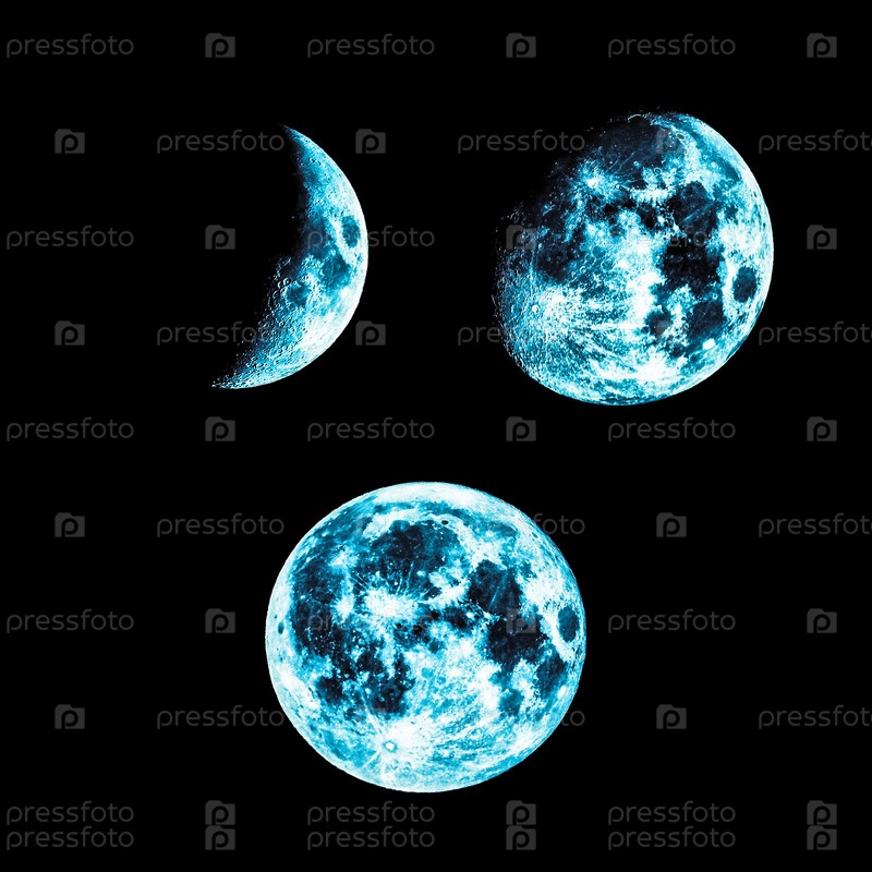 Фазы Луны, видели с телескопа - прохладный холодные тона