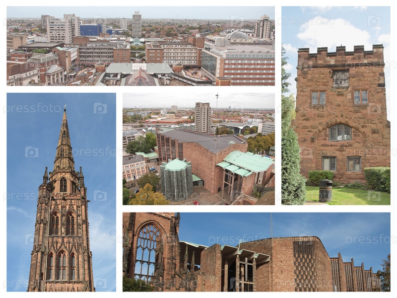 Коллаж достопримечательности города Ковентри, включая собор Святого Михаила